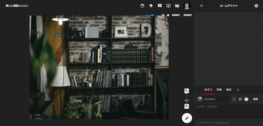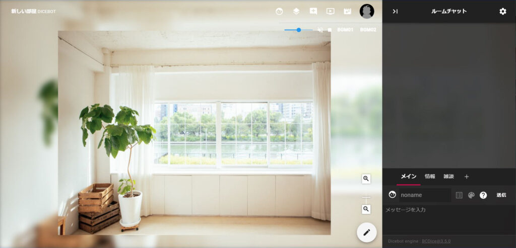 | 4 | テキストなしで反映 | テキストを設定している場合、そのテキストをチャット欄に流さずに背景(と前景)・BGMを盤面に反映させます |