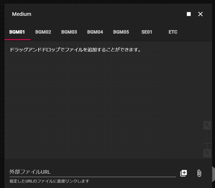 BGMは01~05枠まで、SE(効果音)は01のみ、ETC(エトセトラ)は自由枠です