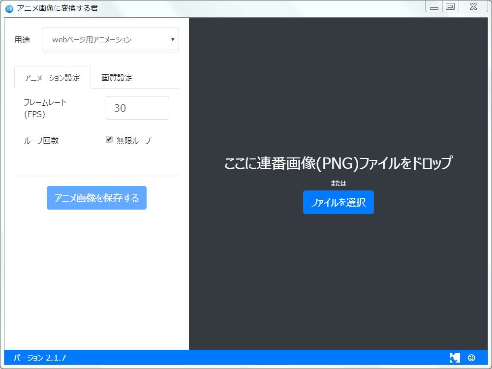 じゃあどうするのかというと、連番保存したpng画像を読み込んでアニメーション画像を作成するソフトを別途用意する必要があります
