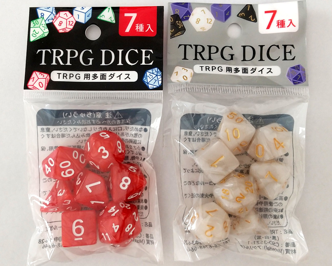 内容:4面・6面・8面・10面(0~9)・10面(00~90)・12面・20面 7種 各1個入